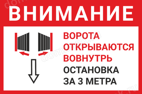 Табличка «Ворота открываются вовнутрь» изготавливается на основе из пластика ПВХ или оцинкованного металла.