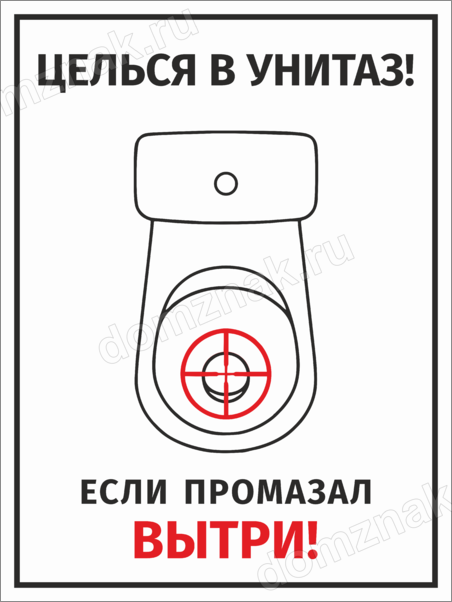Табличка «Целься в унитаз! Если промазал вытри!» изготавливается на основе из пластика ПВХ или оцинкованного металла.