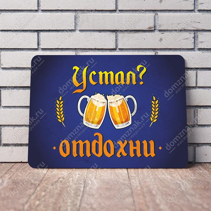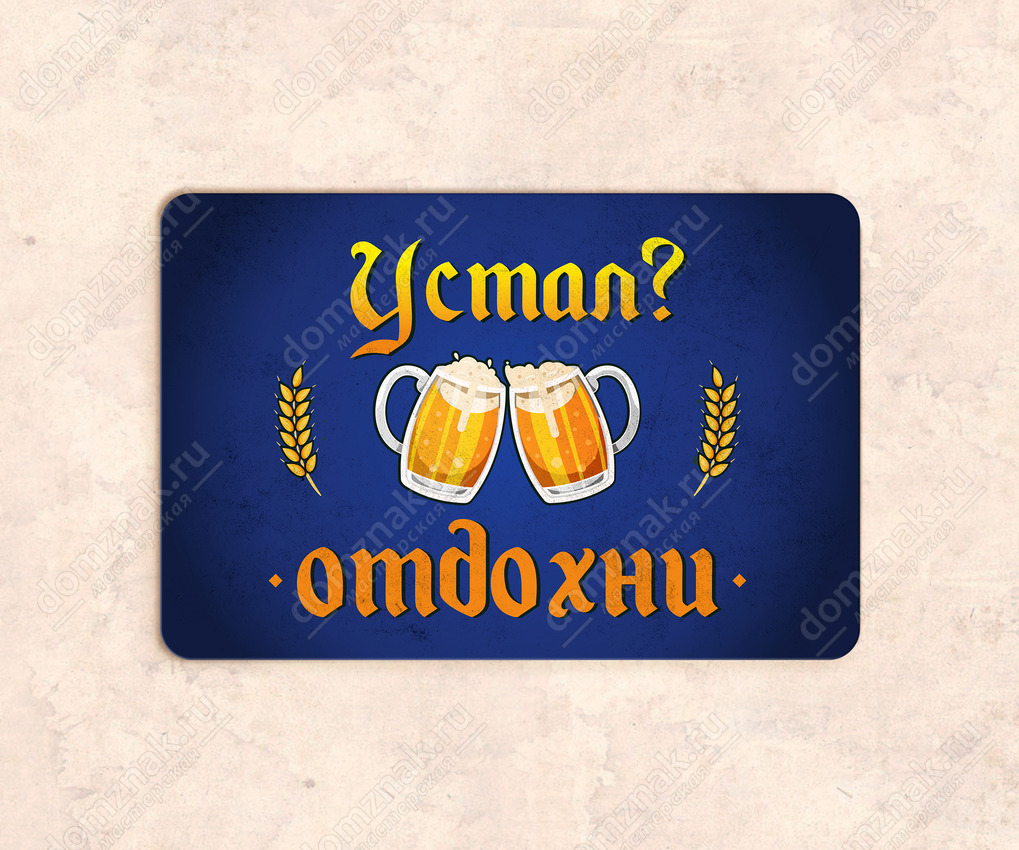 Табличка «Устал? Отдохни.» изготовлена из пластика ПВХ, толщиной 4 мм. Изображение наносится по технологии УФ-печати. Табличка предназначена для использования как в помещении, так и на улице.