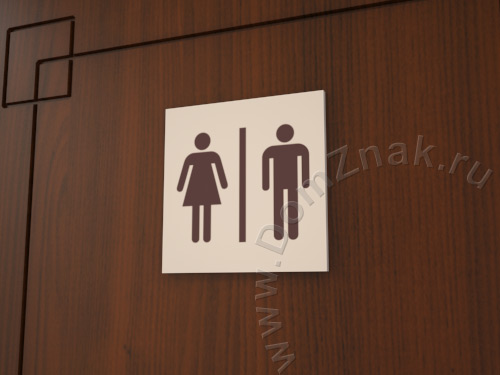 Табличка на дверь туалета изготавливается из пластика ПВХ белого цвета (толщина 3 мм). Изображение наносится плёнкой Oracal 641, либо методом полноцветной печати.