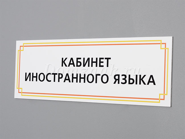Табличка «Кабинет иностранного языка» изготавливается из пластика ПВХ толщиной 3 мм.