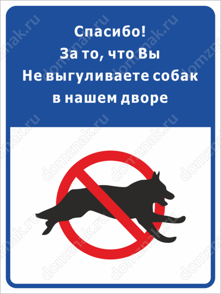 Табличка «Спасибо! За то,что вы не выгуливаете собак в нашем дворе» изготавливается на основе из пластика ПВХ или оцинкованного металла.