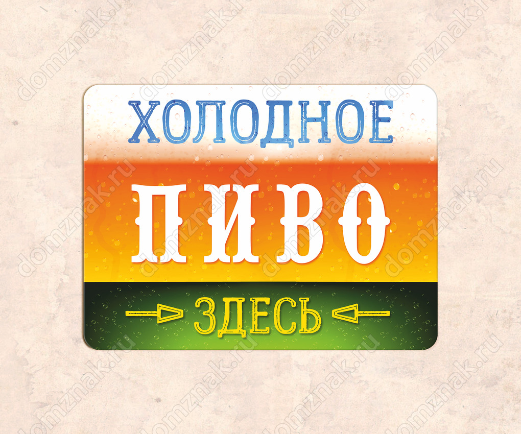 Табличка «Холодное пиво здесь» изготовлена из пластика ПВХ, толщиной 4 мм. Изображение наносится по технологии УФ-печати. Табличка предназначена для использования как в помещении, так и на улице.